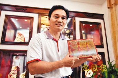 僅九個香煙盒大小的壽山石表面上,卻容納了四萬多個字符的中英文對照版《奧林匹克宣言》,這是微雕大師許通海為迎接奧運創作的又一微雕精品,將於近日晉京參展。