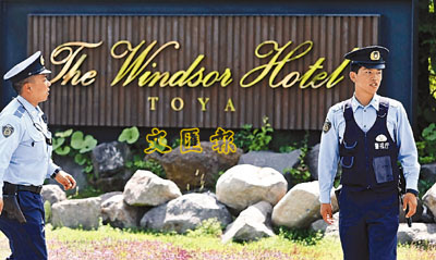 ■日本警察在各國領導人即將入住的賓館前巡邏。資料圖片
