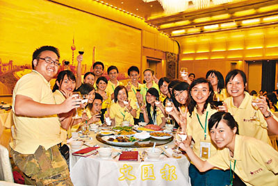 ■能在燈火輝煌的人民大會堂上海廳舉行謝師宴,學員們興奮異常。