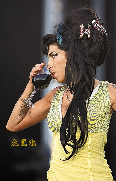 先後在曼德拉演唱會與Glastonbury音樂節成為風頭躉的Amy Winehouse,前天現身西班牙首都馬德里,出席Rock in Rio大型音樂節和逾四萬名觀眾見面。毒后換上招牌裝扮大唱首本名曲《Rehab》,亦不忘把玩一杯紅酒細意品嚐,結果曾一度步履不穩幾乎出醜,似乎煙、酒、毒品和負面新聞永遠都是陪在她的左右。