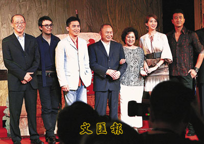 當梁朝偉和林志玲來到記者面前時,記者一時將問題都給了梁朝偉,林志玲則在一旁擺pose讓記者拍照,她尷尬地笑言:「他是負責採訪,我是負責拍照嗎?」在此片中,梁朝偉和林志玲的激情戲一直被人期待,當記者問道拍攝該場面是否順利時,林志玲說這場戲拍了「一個晚上」,引來現場笑聲一片。另外,現場記者似乎對偉仔和嘉玲的婚訊一律緘口不問,當記者提到劉嘉玲最近在忙什麼時,偉仔答在家休息。 圖:新華社