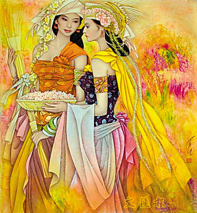 無論是清新純樸的農家女、穿和服的日本麗人、神秘的印度女郎、還是熱情的峇里島女郎,他筆下的來自多國的現代女性,外在和內在都美麗動人,彷彿生命就永恆地停留在那美麗的一瞬之間。