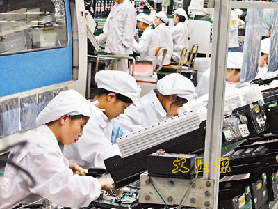 ■富士康科技集團深圳區域首5月的出口增長不足10%。圖為富士康在深圳的生產線。