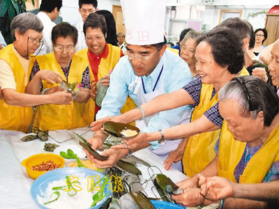 ■阿田「處女下海」,向長者學習包粽的竅門。
