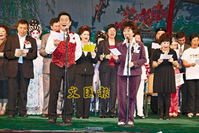 ■香港粵劇曲藝協會日前在北角新光戲院舉辦「粵曲精英迎京奧」粵曲晚會。為慶祝奧運,大會特別創作了一首「奧運之聲」唱好奧運,並與嘉賓於節目開場前一同獻唱,氣氛熱鬧。