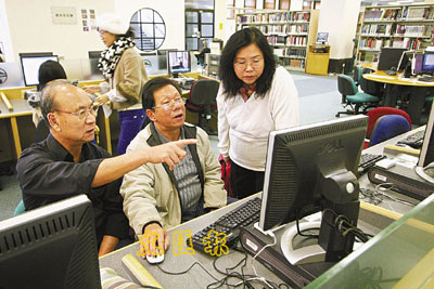 ■李次求(左起)、張英寶及湯潔霞退休後仍然積極進修,享受讀書樂趣。 本報記者潘政祁 攝