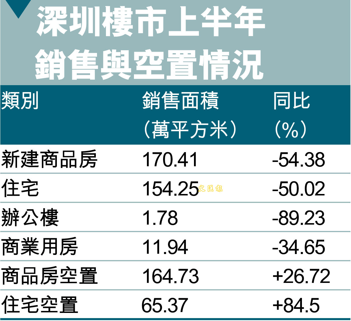 深圳樓市上半年銷售與空置情況
