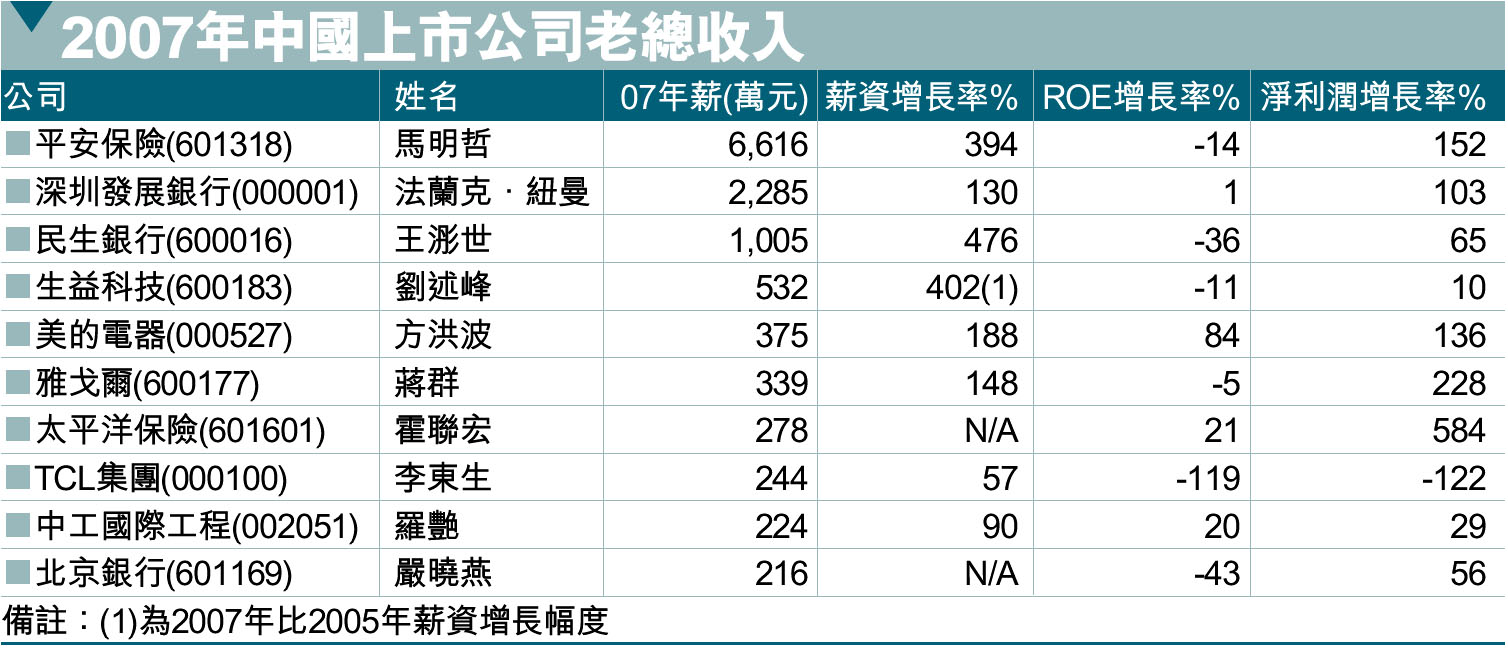 2007年中國上市公司老總收入 (圖)