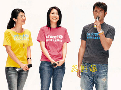 【本報訊】(記者 黃佩麗)古天樂、楊采妮、楊千嬅早前以「聯合國兒童基金會大使」身份到四川地震災區探訪,並於昨日出席新聞發佈會,和大家分享探訪經歷,會上播放他們探訪的精華片段,其中只見楊采妮與一名小朋友交談時,小朋友突然哭了出來,令她手足無措。古天樂表示,起初他們都以為小朋友是因為家人在地震中死去,才哭了出來,但原來是因為他的姐姐離開他半小時,他感到不安才哭,從而知道當地的小朋友會突然孤立自己,因此對災民進行適當的心理輔導十分重要。