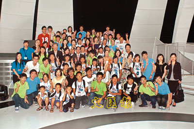 ■亞視藝員以深厚愛心,迎接來自四川災區的學童,賓主在錄影廠留影。
