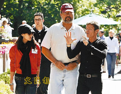 章子怡傳出婚訊,令人感到她彷彿是一登龍門,從此可享少奶奶的福。近日身處美國愛達荷州太陽谷的子怡,和去年一樣都是陪同未婚夫Vivi Nevo而來,雖然愛郎忙於跟時代華納的高大主席傾生意(右圖),但她沿途聽得專注沒有黑面,似乎是已習慣當上傳媒名人的重要賢內助了。不過轉