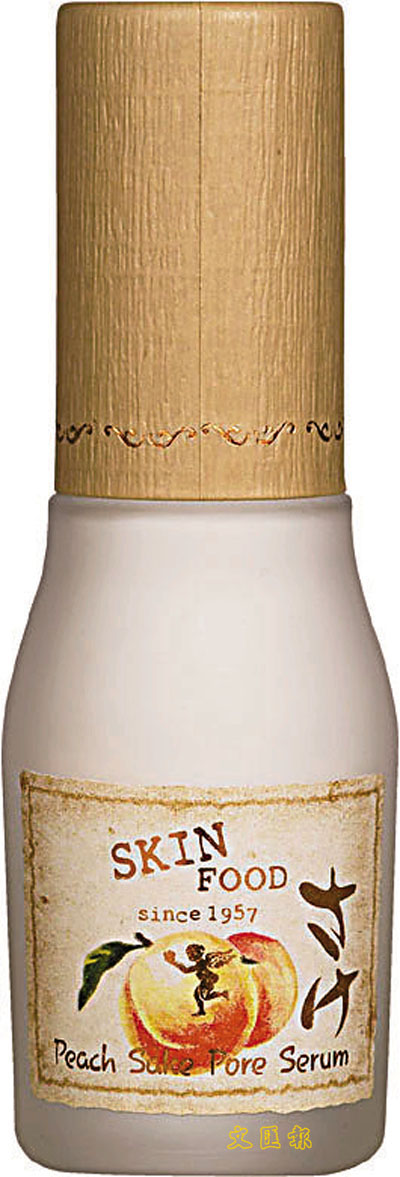 ■SKIN FOOD蜜桃清酒毛孔細緻精華液,蘊含日式傳統清酒成份,有效緊緻毛孔。而蜜桃含有豐富維他命A、維他命C及天然矽成份,可緊緻毛孔及調控油脂分泌。