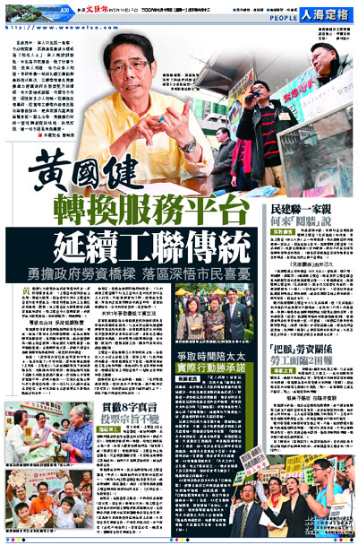 在政界中,有人只生就一張嘴,不必做實事,就靠罵官員搞示威成為「知名人士」,有人則默默耕耘,半生為市民服務,做了好事不說,沒有人知道,也不必旁人知道。早前哄動一時的扎鐵工潮能夠最終得以解決,工聯會理事長黃國健盡力擔當政府及勞資雙方的橋樑,令大家達成協議,可謂功不可沒,卻沒有多少人知曉。從幕後走到幕前,從管理工聯會內務到走進社區服務街坊,更有意循九龍東選區晉身新一屆立法會,黃國健仍保持一貫低調務實的性格,淡然笑說,這一切不過是角色轉變。