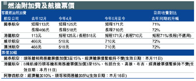 燃油附加費及航機票價 (圖)