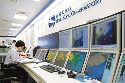 ▲港天文台憑自行研發的天氣預報系統「小渦旋」,擊退各地對手,成為北京奧運8個「臨近天氣預報」機構之一。本報記者梁祖彝 攝