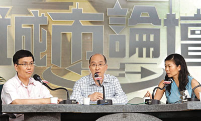 ■政制及內地事務局副局長譚志源(中)表示,政府將會用9個月時間制定實務守則,期望在1年內推行第一階段。本報記者劉國權 攝