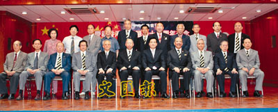 ■九龍總商會慶祝香港回歸祖國11周年舉辦聯歡晚宴,賓主合照。 本報記者陳巧顏 攝