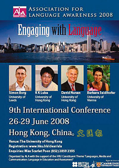 語言無處不在,所以語言意識(language awareness)的研究和活動會涵蓋教學、工作、生活等不同領域。香港大學第9屆「從事語言」(Engaging with Language)國際研討會,邀請了本地及全球來自35個國家的學者,討論及分享有關「從事語言」不同範疇的研究、理論及優秀的做法。這次研討會首次在亞太區舉行,並由香港大學主持。會議除了包括11個重點專題研討大會、13個工作坊、3個報告展示及137個論文發表環節外,還舉行4次專題研討會。