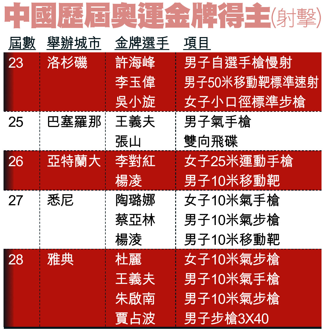 中國歷屆奧運金牌得主(射擊) (圖)