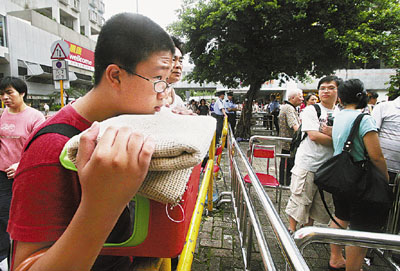 ■排隊市民帶齊裝備,以應付漫長的等候。