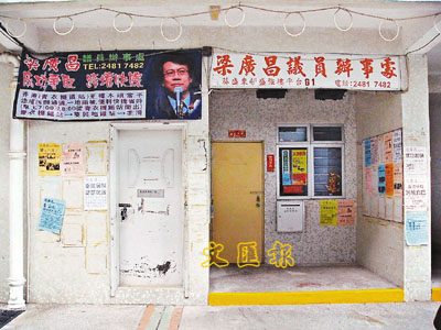 ■梁廣昌位於葵盛東h盛強樓的議員辦事處。