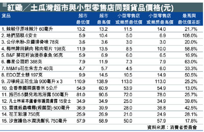 紅磡/土瓜灣超市與小型零售店同類貨品價格(元) (圖)