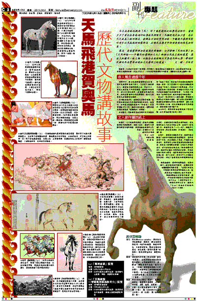 最近,香港藝術館和香港歷史博物館,分別舉辦「馬的故事」和「天馬神駿──中國馬的藝術和文化」兩個以馬為主題的展覽,展出大批國家一級文物,以配合本港協辦北京奧運馬術比賽,帶領市民探討馬在實用功能和文化藝術上的意義。