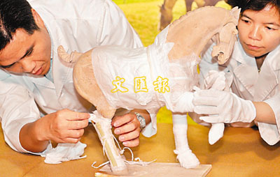 ■唐代「白陶舞馬俑」:陶馬於1972年出土自唐太宗李世民昭陵15公里外的陪葬墓張士貴墓。白陶舞馬俑是有紀錄以來第一匹出土的舞馬,估計是據西域一帶的馬匹形象塑造,用白陶塑造素燒,表面上過一層素釉。馬尾是盤起如髻一樣,是唐代流行的馬尾裝飾風格。(b)