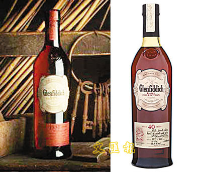 ■(左)1937年格蘭菲迪威士忌,全球僅有61瓶,06年曾以20,000美元拍出一瓶。(右)格蘭菲迪40年陳釀威士忌,約值3,000美元。