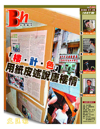 趕在八月中清拆之前, Para/Site藝術空間負責人,本地藝術工作者李民偉與一班人登上這座樓,象徵式以「一蚊雞」租下場地,並設計出「樓.計.色」為主體,用紙皮帶出起一個展館的主題,用以緬懷唐樓幾十載的歷史、建築、文化、人物、故事和精神。