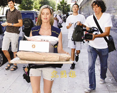 ¡@¡½¶l¬Fû¤u±·µÛ§ª«¡A°e©¹ªk°ê¥§´µ²¦¦w²£¤lªºÂå°|¥h¡C ¸ô³zªÀ