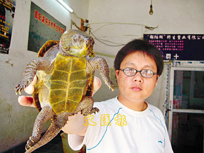 ■鷹嘴龜形態與常見龜大不相同。本報江西傳真
