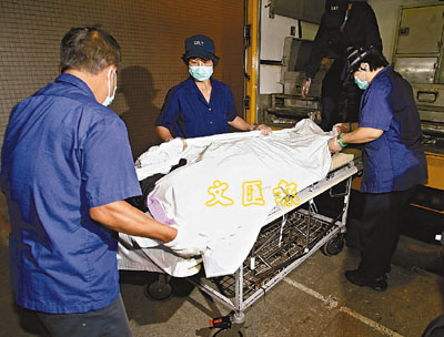 ■吊頸少女屍體由仵工舁送殮房。本報記者溫瑞麟 攝