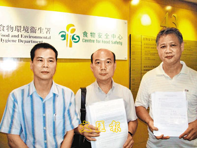 ■黃偉泉(中)昨日連同兩名雞販到食環署交牌,他相信至限期屆滿會有8成雞販願意離場。 本報記者李見安 攝