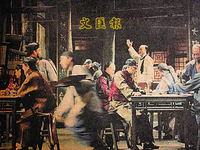 ■話劇《茶館》中,庶人議論國事,反映了一個時代的風貌。(網絡圖片)