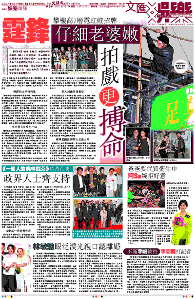 【本報訊】(記者 李慶全)謝霆鋒前晚為電影《證人》拍煞科戲,從地面爬上七層樓高的霓虹光管招牌,這樣搏命都是為了老婆張柏芝和兒子Lucas,即使柏芝曾捲入淫照風波,霆鋒仍感覺屋企人始終是過人世,總比當年因「頂包案」受牢獄之苦經歷更大。