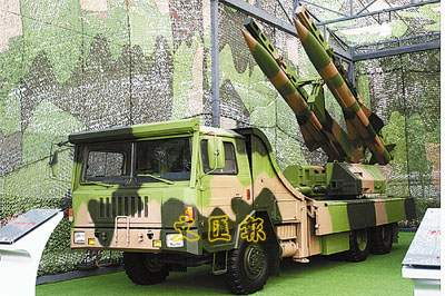 ■新型中程地空導彈發射車。 照片由中國人民革命軍事博物館提供