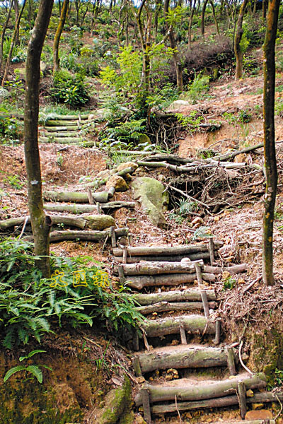 ■用粗糙樹幹搭成的山路,大自然風味十足。