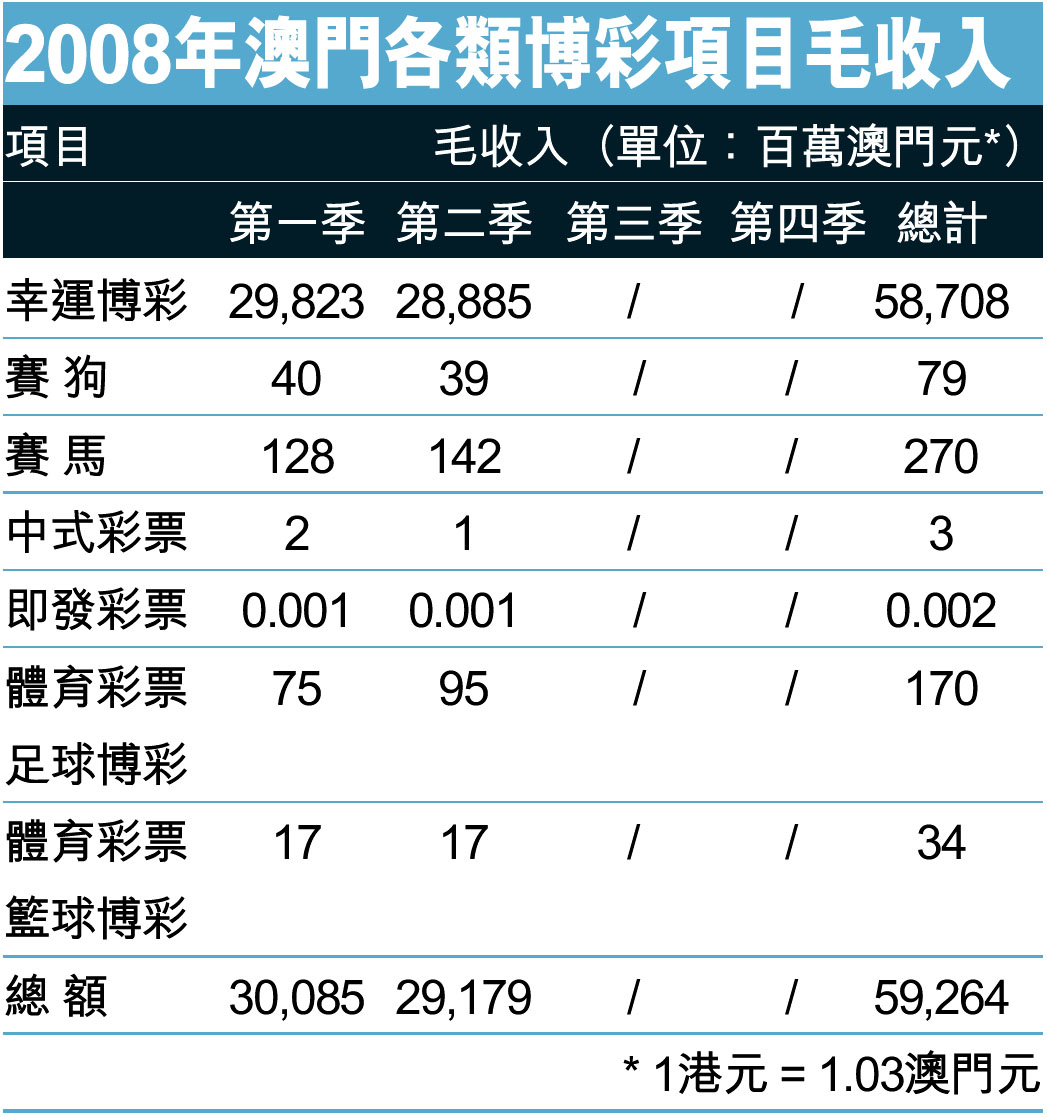 2008年澳門幸運博彩娛樂場數目 (圖)