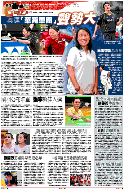 各國奧運軍團正全力備戰。高軍、李佳薇、徐懷雯、譚凱文等華裔的名字,已赫然出現在其出征北京奧運的名單上。這些華裔運動員因人數之眾、代表國家之多、參加項目之廣,受到廣泛關注。