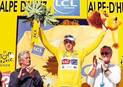昨晨環法單車賽從上阿爾卑斯省的昂布蘭到阿爾卑斯的於茲、全程210.5公里、設4個爬坡點的高海拔山地第17賽段,丹麥CSC車隊的西班牙車手卡斯達以絕對優勢奪取冠軍,並將黃色領騎衫收入囊中。 美聯社