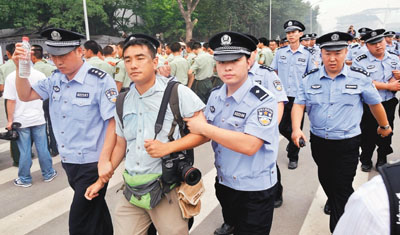 滬千人頂烈日 警隔兩區疏流 (圖)