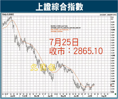 上證50指數收於2,265.18點,下跌1.47%。全天成交650億元,較前天減少近兩成。交易品種236家上漲,43家平收,633家下跌。美股大跌及其反映的美國經濟中的問題,再次引起市場對未來大經濟環境惡化的擔憂,謹慎態度因此「回潮」;而近期幾次推動大盤上漲的政策利好傳聞卻始終未能有實際兌現,市場輿論微詞不斷,也似越來越失去耐心。
