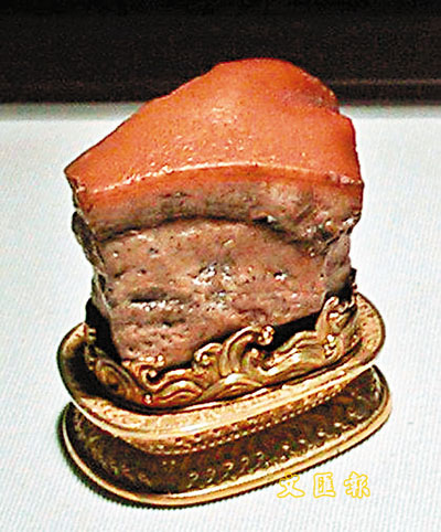 台北「故宮博物院」所藏「東坡肉」(見圖)便屬於其中極為珍貴的醬斑瑪瑙。做工細緻的精品,早已被藏家爭相競投,比如瑪瑙臥鹿形鼻煙壺在佳士得拍出了20.7萬元人民幣,晚清官封瑪瑙印在去年廣州春季拍賣會,拍出了3.8萬元人民幣,市場上的瑪瑙精品也就愈來愈少。 ■ alpha_goal@sinaman.com