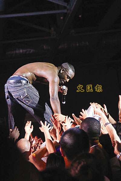 ■Akon上前與歌迷握手時,不慎露底。本報記者梅韾文 攝