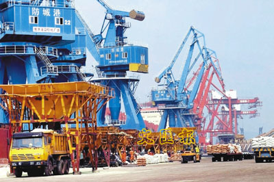 ■預計5年內廣西總吞吐能力將達2.3億噸。圖為防城港碼頭。