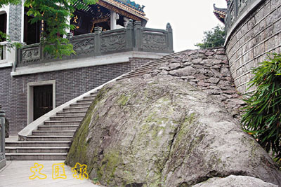 ■廣州鬧市的一個道觀原為一座5300萬年前形成的死火山。 圖為曾是侏羅紀火山岩石疊成的山崗地。本報記者敖敏輝攝
