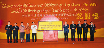 紅塔集團「國際化」發展戰略從一般貿易向境外實體運作轉型取得了實質性進展。7月28日,由紅塔集團控股的老撾寮中紅塔好運煙草有限公司更名暨新品上市發佈會在老撾首都萬象東昌酒店隆重舉行。老撾工業貿易部部長南.維雅吉、中國駐老撾大使潘廣學、中國煙草國際有限公司副總經理郭勝鎖、中國海南煙草專賣局(公司)副總經理林先德、中國雲南中煙工業公司副總經理姚慶艷、雲南煙草國際有限公司總經理曹俊輝、紅塔集團總裁李穗明等領導,老撾社會名流、中國駐老撾大使館人員、駐老撾中資企業代表和華人代表、老撾煙草經銷商、煙農代表、新聞媒體記者等200餘人參加了發佈會。