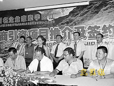 ■又一批投資項目落戶怒江。圖為活動期間項目簽約儀式。攝影:本報記者 周亞明