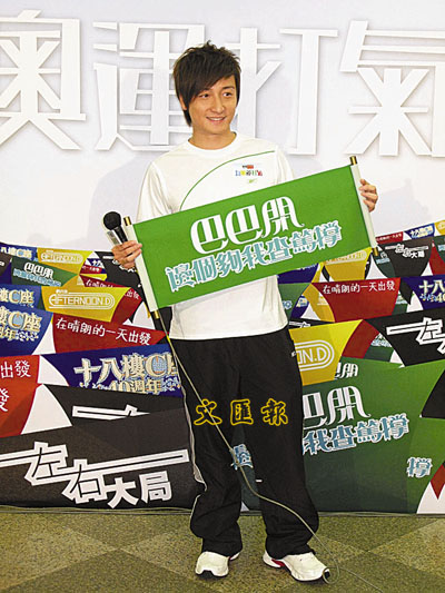 【本報訊】(記者 黃佩麗)行政會議召集人梁振英早前捐出「祥雲」火炬為四川地震災民義賣籌款,最終由中國香港手球總會會長吳守基以100萬元投得,並於昨日在商台舉行「為奧運打氣」暨「祥雲」火炬交接儀式,同時進行支票移交,即將到北京採訪奧運的方力申都有出席。